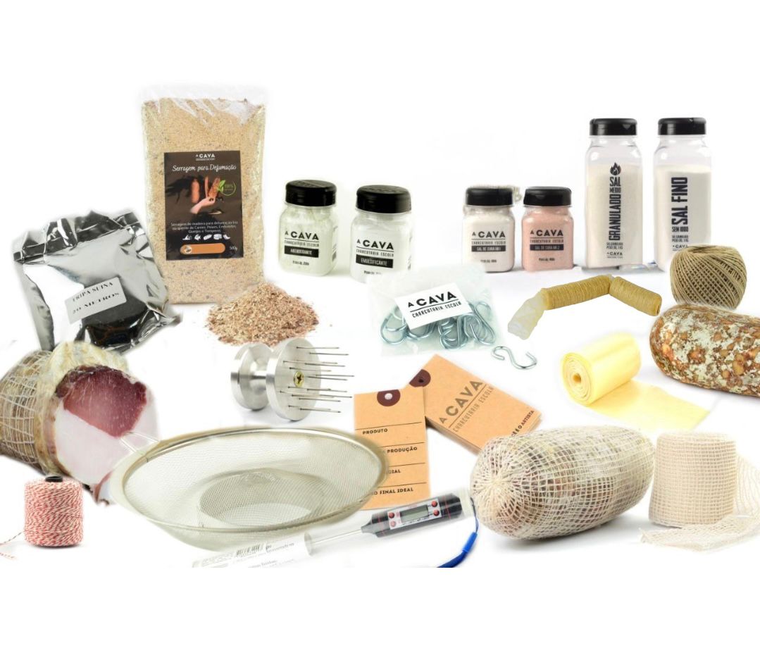 Leve sua paixão pela charcutaria para o próximo nível com o Kit Completo Especial CAVA! Este é o pacote definitivo para quem busca excelência e autonomia na produção de embutidos, defumados e curados. Com 18 itens cuidadosamente selecionados, este kit oferece desde os sais de cura essenciais até ferramentas especializadas, garantindo que você tenha tudo o que precisa para criar produtos artesanais de alta qualidade e com total segurança.